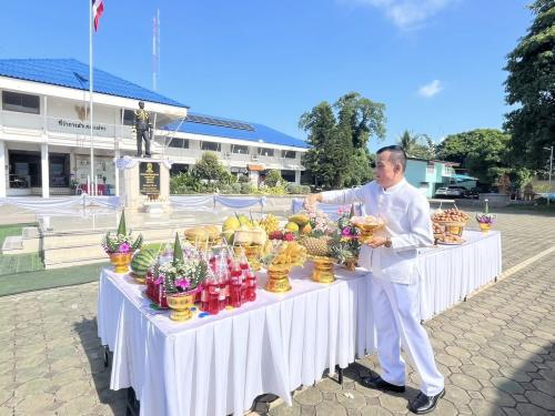 นายเกษม ใจจันทร์ นายอำเภอแม่ทะ นำหัวหน้าส่วนราชการ, ผู้บริหารท้องถิ่น, ผู้นำชุมชน, ข้าราชการและพนักงานลูกจ้าง เข้าร่วมพิธีบวงสรวงสักการะพระบรมราชานุสาวรีย์ พระบาทสมเด็จพระจุลจอมเกล้าเจ้าอยู่หัวฯ รัชกาลที่ 5 ณ ลานพระบรมราชานุสาวรีย์ฯ ที่ว่าการอำเภอแม่ทะ อำเภอแม่ทะ จังหวัดลำปาง