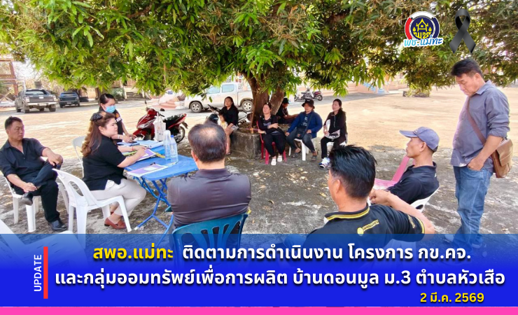 📝สพอ.แม่ทะ : ติดตามการดำเนินงานโครงการแก้ไขปัญหาความยากจน (กข.คจ.) และกลุ่มออมทรัพย์เพื่อการผลิตบ้านดอนมูล หมู่ที่ 3 ตำบลหัวเสือ อำเภอแม่ทะ จังหวัดลำปาง