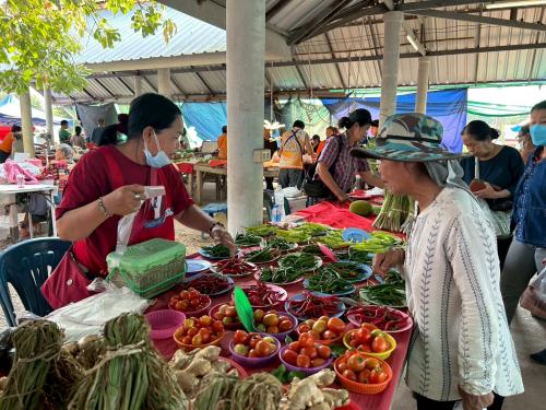🔹️ ในการนี้ ทีมงานสำนักงานพัฒนาชุมชนแม่ทะ ติดตามการดำเนินกิจกรรมตลาดประชารัฐคนไทยยิ้มได้และติดตามครัวเรือนผู้มีรายได้เฉลี่ยต่อคนต่อปี รายได้ไม่เกิน 45,000 บาท ตามข้อมูลความจำเป็นพื้นฐาน (จปฐ.) ประจำปี พ.ศ. 2568 ครัวเรือนเป้าหมาย TPMAP ประเภทพัฒนาได้ ตำบลดอนไฟ นำผลผลิตจากการฝึกอาชีพปลูกผักแบบประณีต ไฮโดรโปนิกส์ จำหน่ายในตลาด ทำให้ครัวเรือนมีรายได้เพิ่มขึ้น สามารถต่อยอดอาชีพและเก็บออมตามปรัชญาของเศรษฐกิจพอเพียง